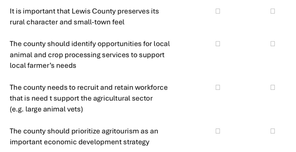 The feedback collected will help shape a future vision for Lewis County as a place to live, work, and raise a family.